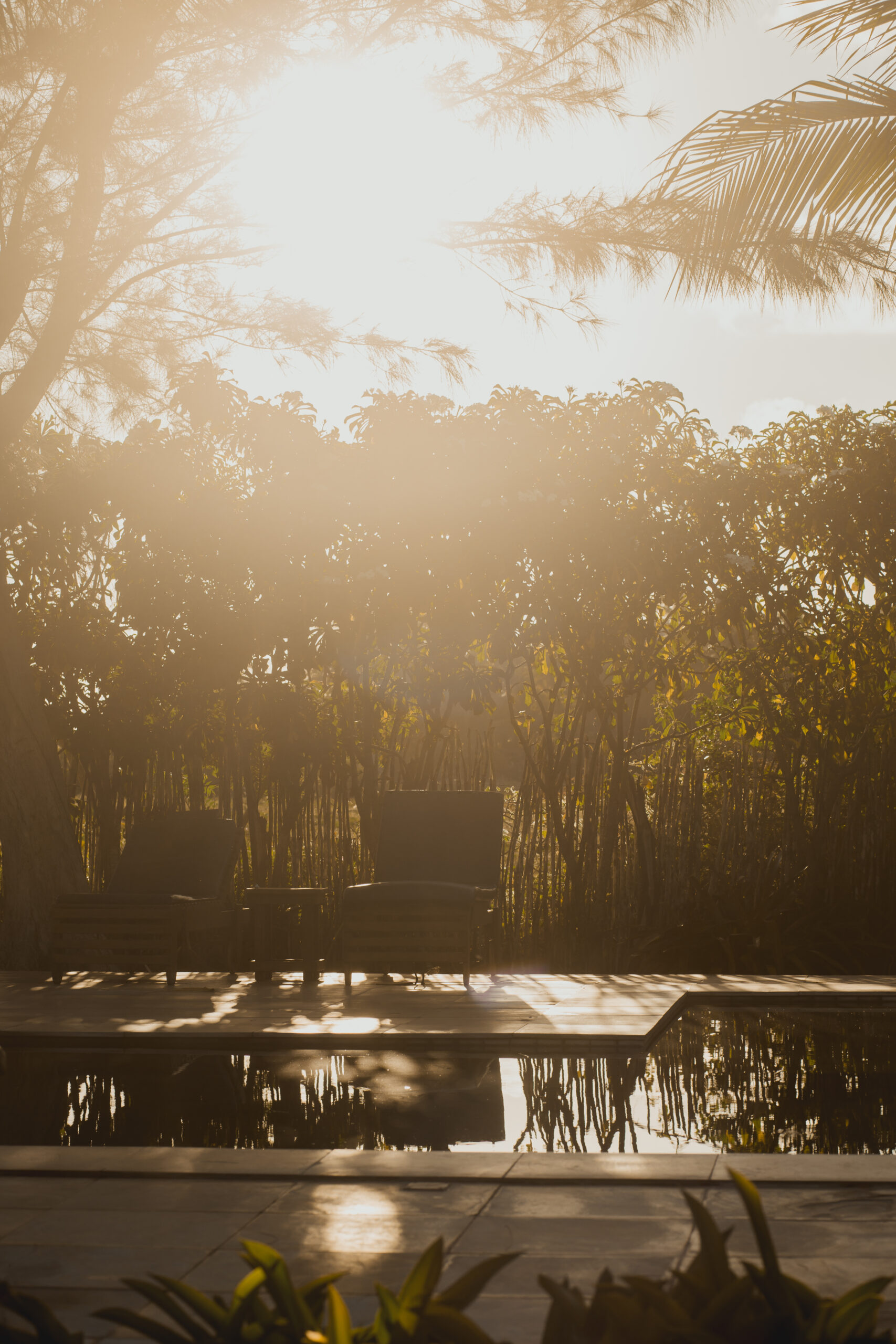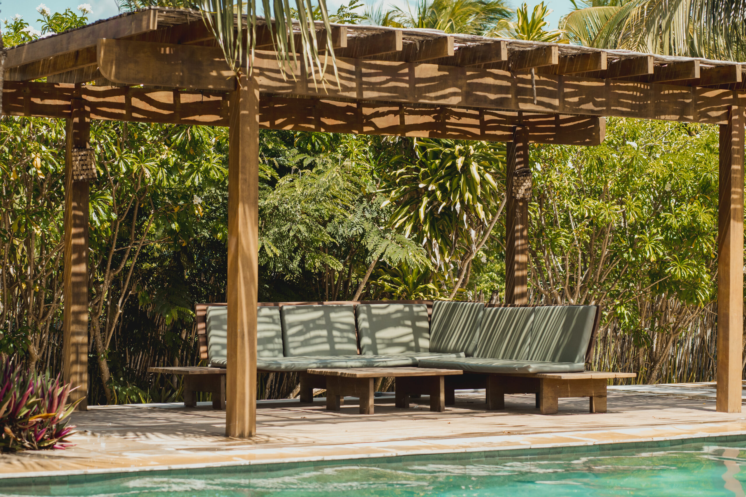 Cada acomodação foi planejada para oferecer conforto e privacidade em um ambiente tropical encantador.